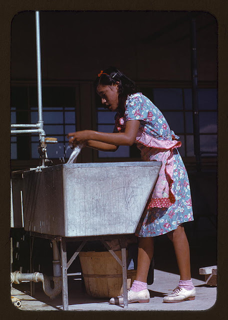 Young woman at the community laundry on Saturday afternoon, Robstown, 1942